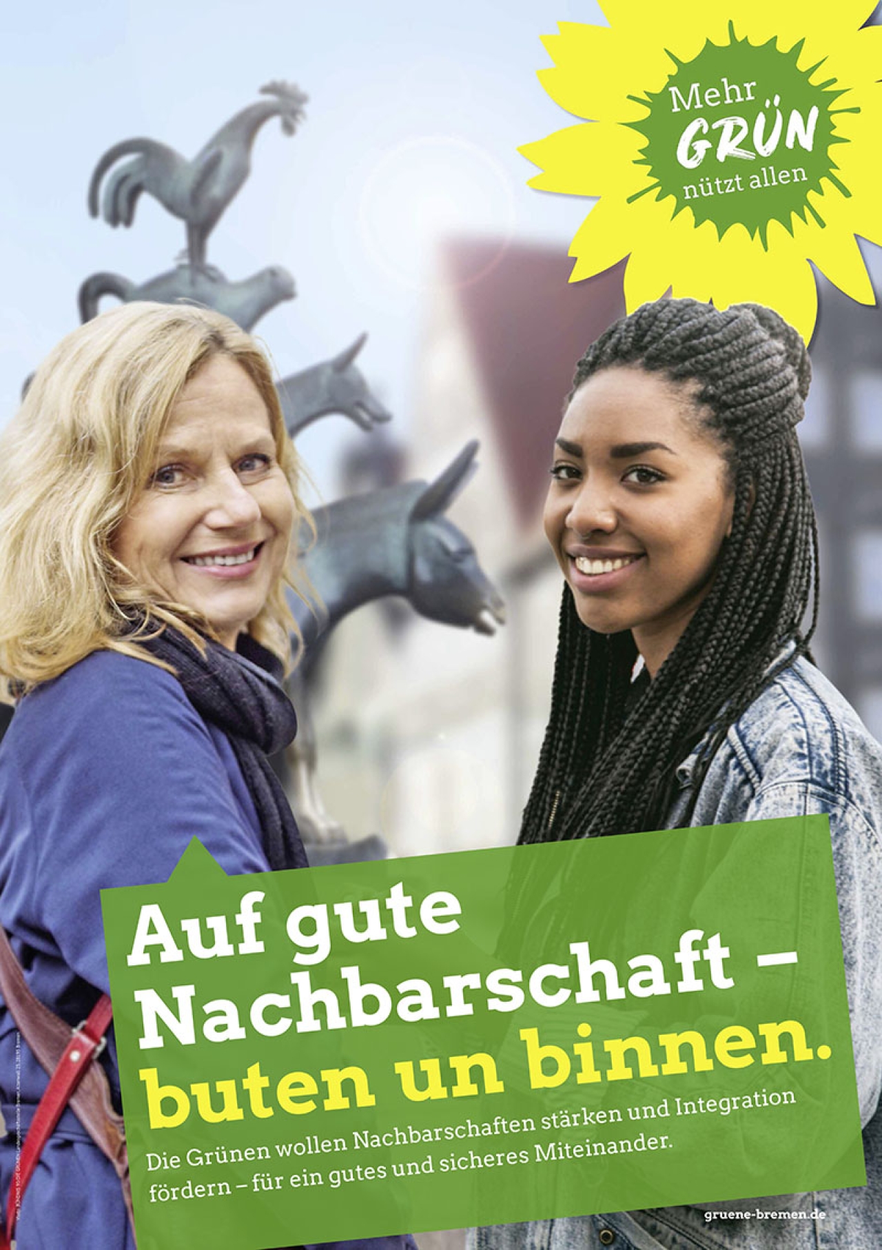 Zur Bürgerschaftswahl 2019 hatten die Grünen drei Agenturen zur Vorstellung ihrer Ideen eingeladen. Wir wurden mit der Gestaltung des Wahlkampfes beauftragt. Die Grünen hatten zu diesem Zeitpunkt mehrere Legislaturperioden dem Senat angehört und der Weser-Kurier berichtete über eine hohe Unzufriedenheit in der Bevölkerung. Es wurde mit deutlich weniger Stimmen gerechnet. Am Ende konnten sich die Grünen deutlich stabilisieren, es gab einen Zugewinn von rund 2 Prozent.